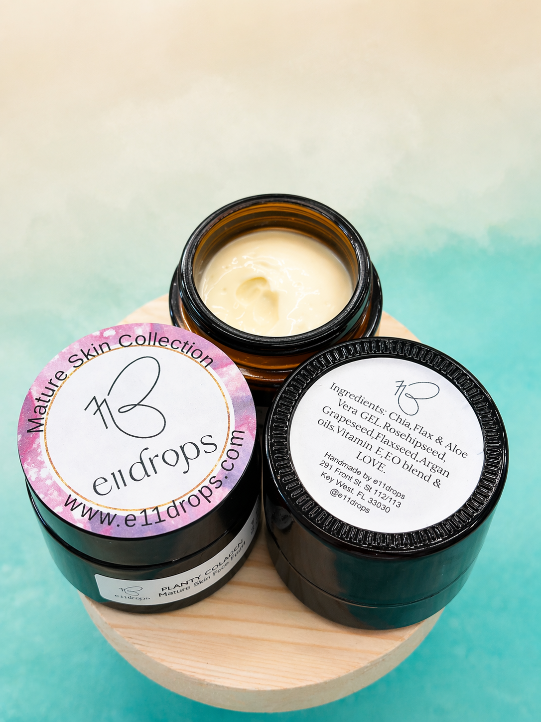 This formula includes flax and chia seed gel, aloe vera, rosehip seed oil, grapeseed oil, argan oil, and flaxseed oil, combined with essential oils such as frankincense and geranium. These ingredients are known for their moisturizing and skin-conditioning properties, helping to support soft, smooth, and refreshed-looking skin.